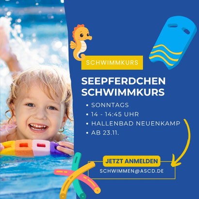Anmeldung aufgrund der Kurzfristigkeit über unser Anmeldeformular (!!) und zusätzlich per E-Mail an schwimmen@ascd.de.